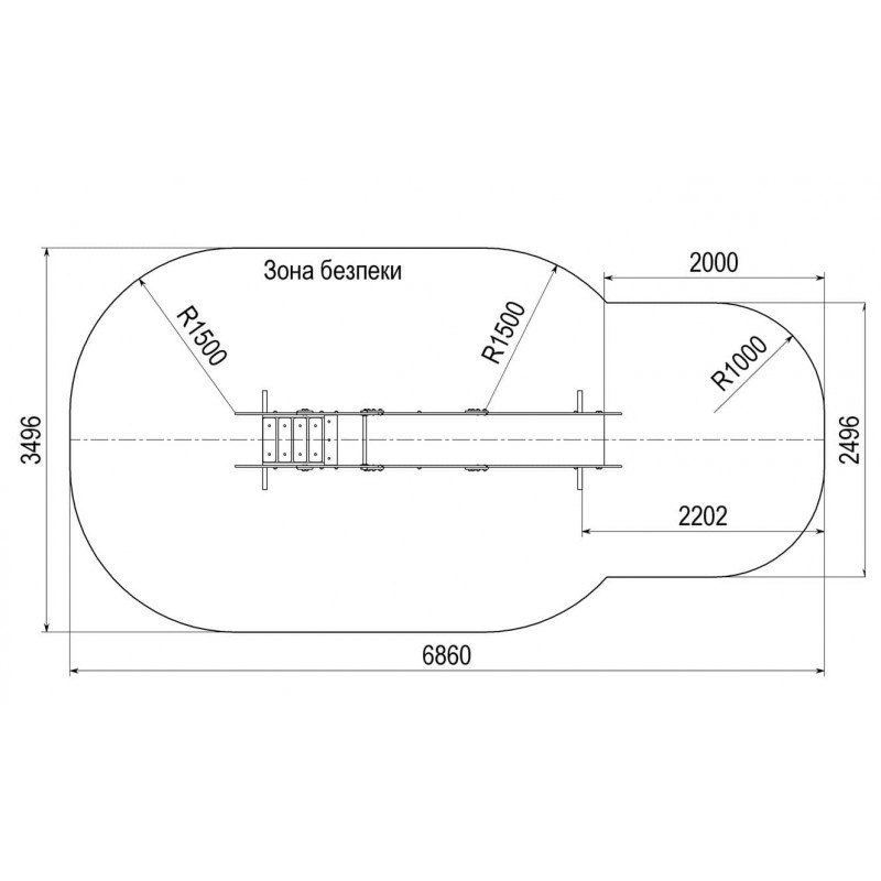 Вільна зона безпеки становить 1,5 м в усі боки від проекції гірки.