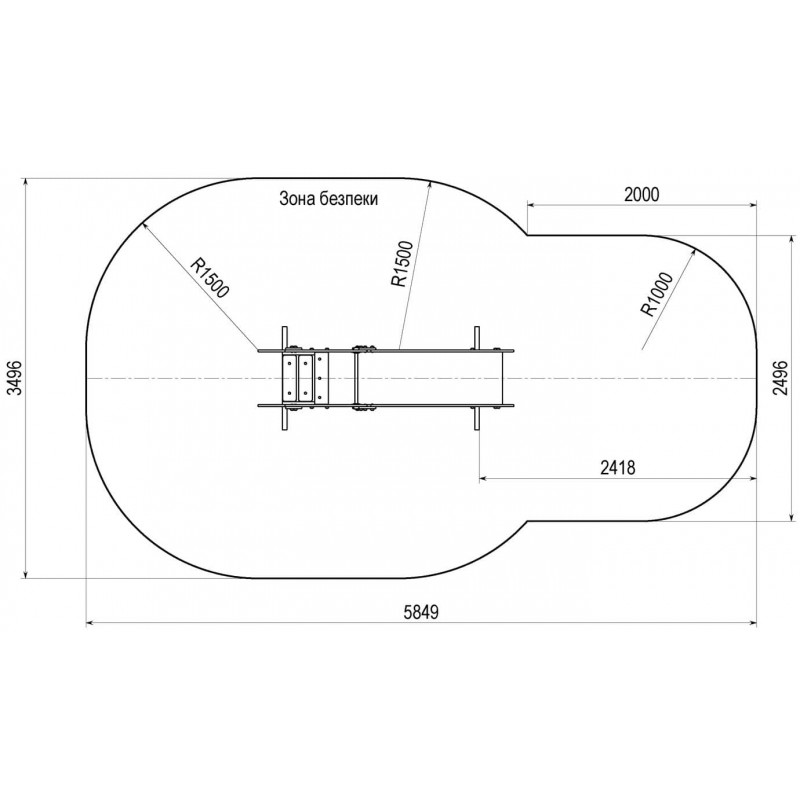 Вільна зона безпеки становить 1,5 м в усі боки від проекції гірки.