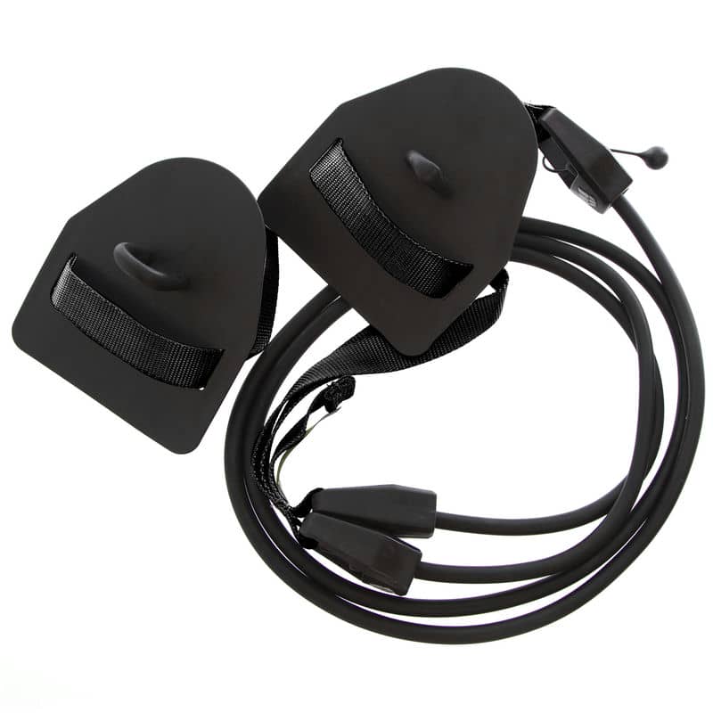 Тренажер DRY TRAINING WITH PADDLES є двома латексними тросами, з'єднаними з нейлоновою петлею, за допомогою якої тренажер кріпиться на будь-якій міцній (бажано металевій) конструкції, на вільних кінцях тросів розташовані лопатки. Лопатки дозволяють руці та долоні перебувати в такому ж положенні, як і під час гребка у воді, це значно підвищує ефективність тренувань, максимально наближаючи заняття з тренажером до плавання у басейні. У процесі тренування плавець імітує рухи, що здійснюються у воді, завдяки чому помічає та виправляє помилки, що здійснюються під час виконання гребка.