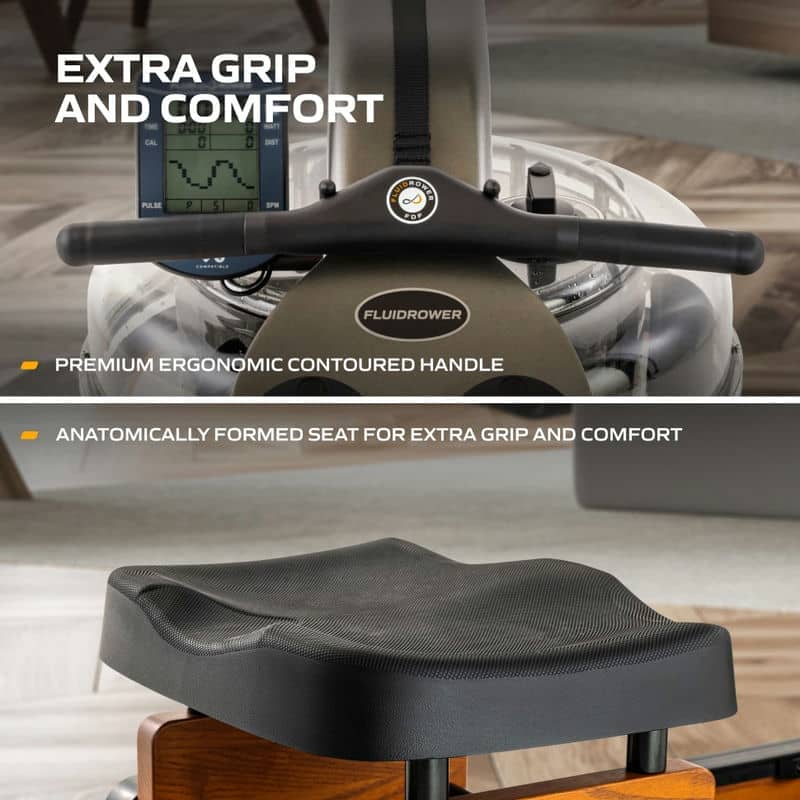Fluid Bluetooth Monitor дає миттєву інформацію про всі ваші параметри тренування, такі як час, вати, калорії, відстань та кількість гребків на хвилину. Крім того, монітор автоматично відображає рівень опору, який ви встановили за допомогою циферблата на тренажері веслування. Ви також можете підключитися до тренувальних програм, таких як Fluid Connect, Regatta, Asensei, EXR та Kinomap, за допомогою Bluetooth.
