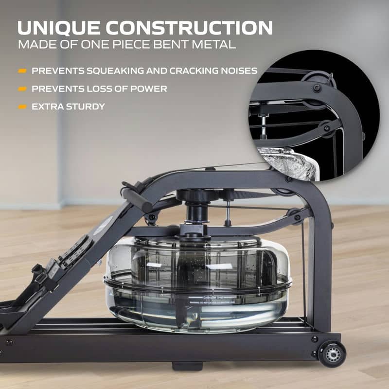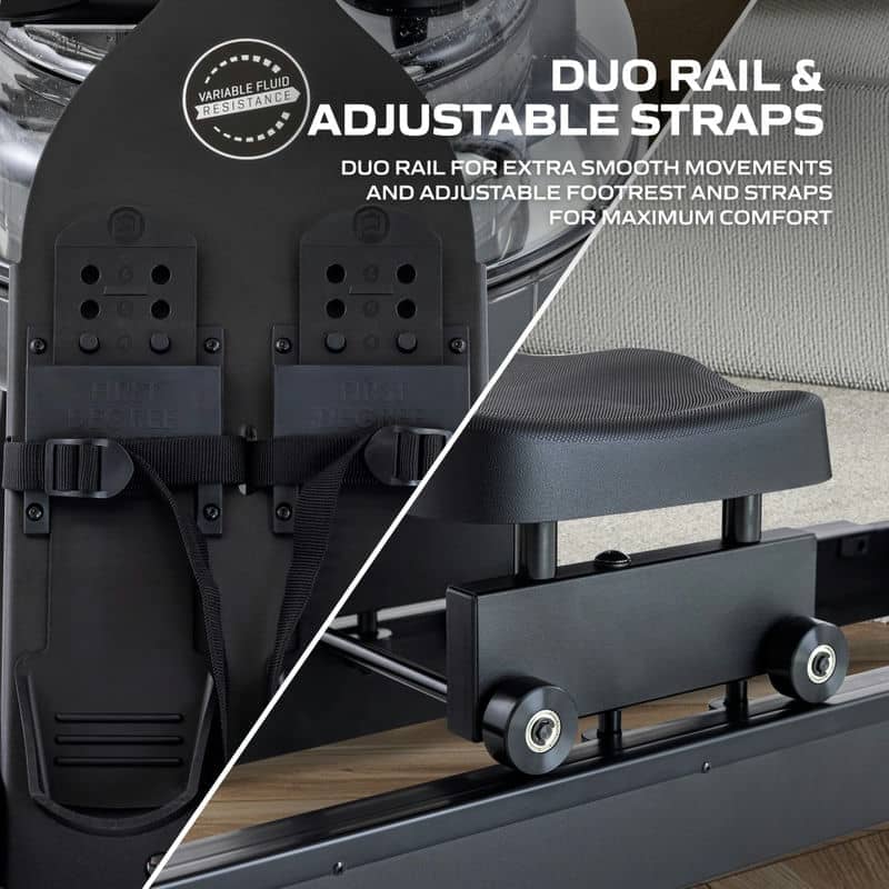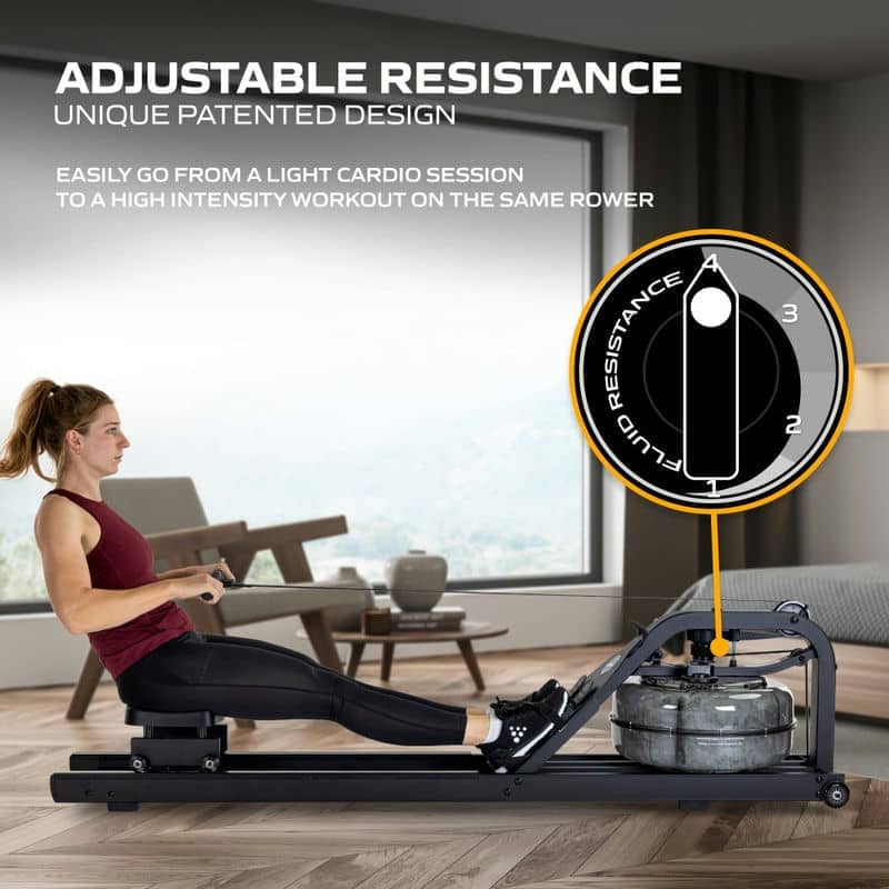 Гребля з Fluid Rower звучить, відчувається і виглядає так, ніби ви знаходитесь на воді завдяки високоякісному резервуару для води із запатентованою технологією Twin Tank. Ця унікальна система дозволяє легко регулювати опір води у будь-який час за допомогою циферблату.