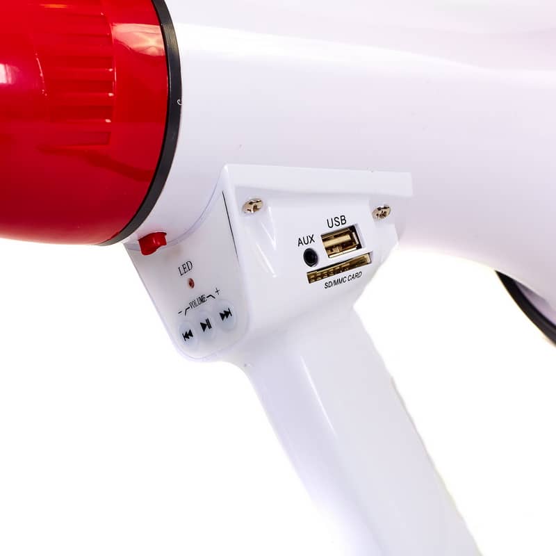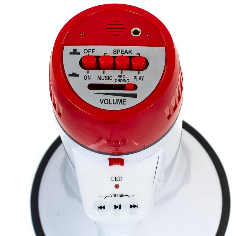 Це надійний мегафон з можливістю передачі звуку на відстань 500 метрів і більше. Являє собою конус із жорстко прикріпленою рукояттю, виготовлений зі стійкого до ударів пластику. Якість матеріалу та надійна конструкція дозволяють експлуатувати його за будь-якої погоди протягом 7 годин. Енергоживлення може здійснюватися від батарейок типу 6С. У комплекті з гучномовцем також йде мікрофон, що позбавляє користувача необхідності носити мегафон безпосередньо перед обличчям. Основну частину електроніки змонтовано в кришці на торці гучномовця. Вона легко відкривається, що дозволяє швидко замінити енергоживлення. Також на кришці змонтовано панель управління – кнопки увімкнути/вимкнути, записи та відтворення звуків, регулювання гучності та роз'єм USB.