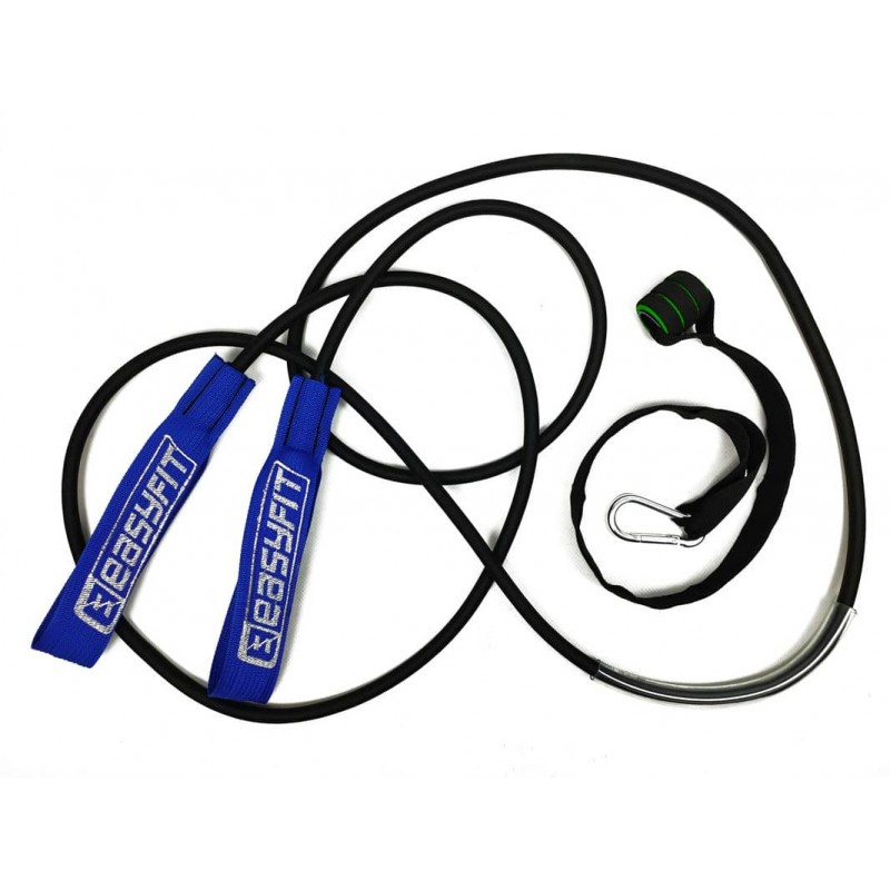 Великий комплекс вправ. На відміну від закільцьованої гумки за допомогою такого тренажера можна виконувати набагато більше різних вправ. Еспандер EasyFit дає можливість одночасно і незалежно виконувати руху кожною рукою (або ногою). За допомогою однієї гумки такого конструктиву можна, наприклад, виконувати розведення, імітувати роботу з гантелями (на горизонтальній лаві або виставленої під кутом), всілякі жими і верхні тяги, вправи з гирею, почергове підняття рук на біцепс і інші .... Фактично комплекс вправ обмежується тільки фантазією користувача.