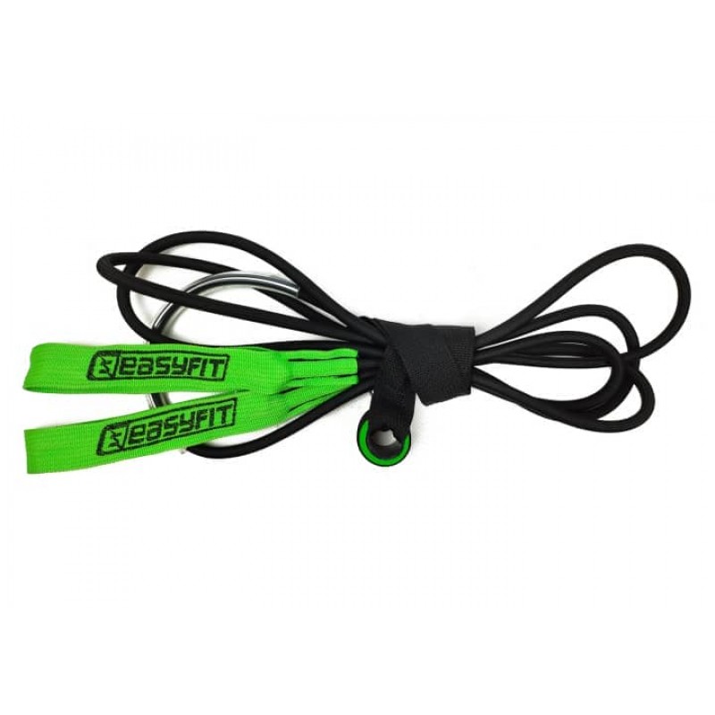 Довговічність.Склад гумки EasyFit - латекс у вигляді джгутів дрібного перетину. Прожилки на відміну від цільної гумовою петлі краще переносять будь-які навантаження і набагато менше рвуться. При пошкодженні навіть одного джгута еспандер залишається цілісним і не втрачає своїх властивостей. Додатковим захистом є обплетення з міцної поліефірної нитки, яка захищає еспандер від зовнішнього впливу.