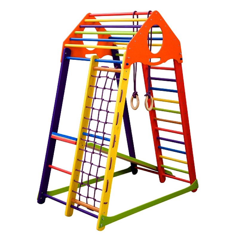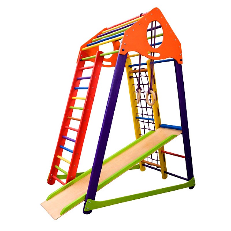 Дитячий спортивний комплекс для дому BambinoWood – прекрасний помічник для дбайливих батьків, і найкраще місце для ігор та занять їх рухомих і цікавих малюків. Легкий, компактний і багатофункціональний спортивний комплекс прекрасно поміститься навіть в малогабаритній квартирі. Цей дитячий спортивний комплекс розрахований на найменших спортсменів, віком від 1 року до 5-7 років. Конструкція виробу створена з урахуванням всіх фізіологічних особливостей розвитку дітей раннього та дошкільного віку. Дитячий спортивний комплекс для дому BambinoWood пройшов всі необхідні перевірки якості і відповідає існуючим вимогам міжнародної сертифікації РЄ і TUV.Для виготовлення дитячого спортивного комплексу для будинку BambinoWood використовуються тільки якісні сертифіковані матеріали, які відповідають вимогам ГОСТу: натуральний бук і сосна, вирощені в екологічно чистих областях України. Слід зазначити, що натуральна деревина ретельно обробляється і висушується на власному виробництві компанії "PLAYBABY", а потім акуратно шліфується до абсолютної гладкості і розкривається лаком, який не має запаху і відмінно захищає деревину від руйнувань і вологи. Можлива комплектація: шведська стінка; гладіаторські сітка; рукоход; дитяча гірка;що натуральна деревина ретельно обробляється і висушується на власному виробництві компанії "PLAYBABY".
