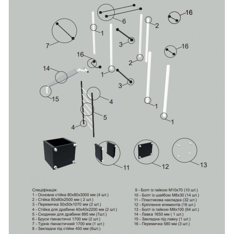 Вуличний спортивний комплекс Ladas 3500x2820x3000 мм, код: УК-01
