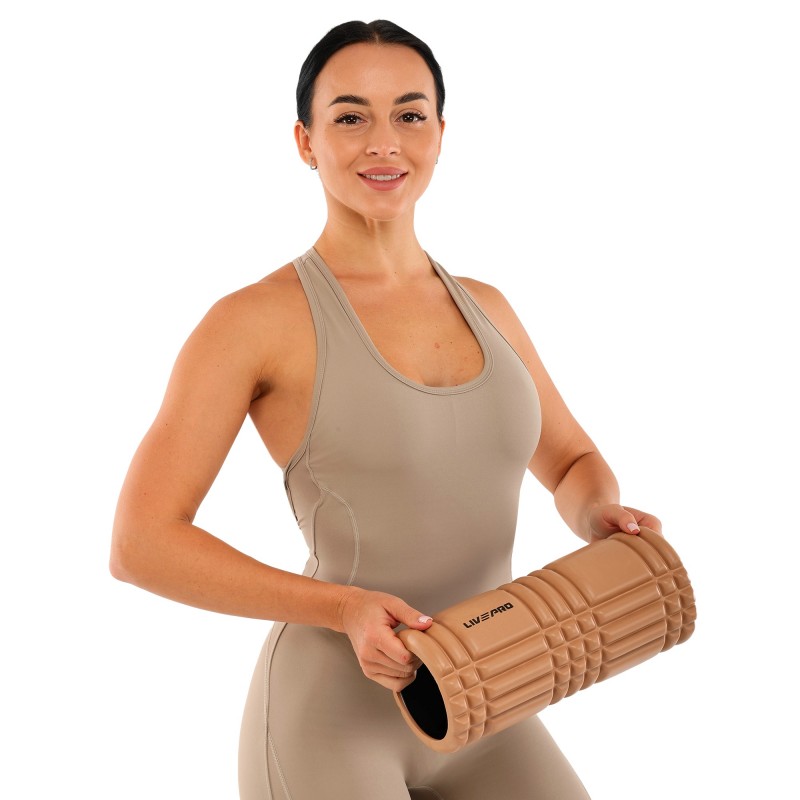 Ролер масажний циліндр (ролик мфр) Grid 3D Roller LiveUp 33см, темно-коричневий, код: LP9007