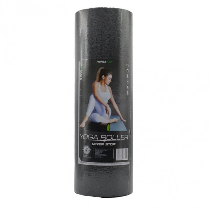 Масажний ролик (роллер) гладкий PowerPlay Fitness Roller 450х150мм, чорно-зелений, код: PP_4021_BL/Green_(45*15)