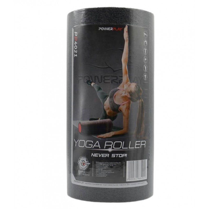 Масажний ролик (роллер) гладкий PowerPlay Fitness Roller 300х150мм, чорно-червоний, код: PP_4021_BL/Red_(30*15)