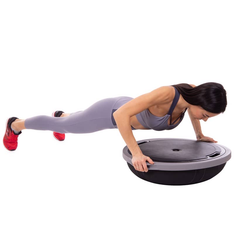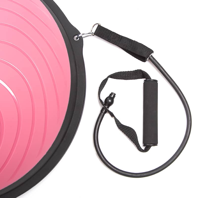 Балансировочная платформа цільна Bosu Mini з двома еспандерами 48х15 см чорний-рожевий, код: FI-1936_BKP-S52