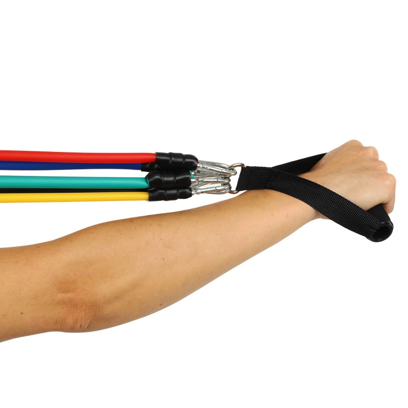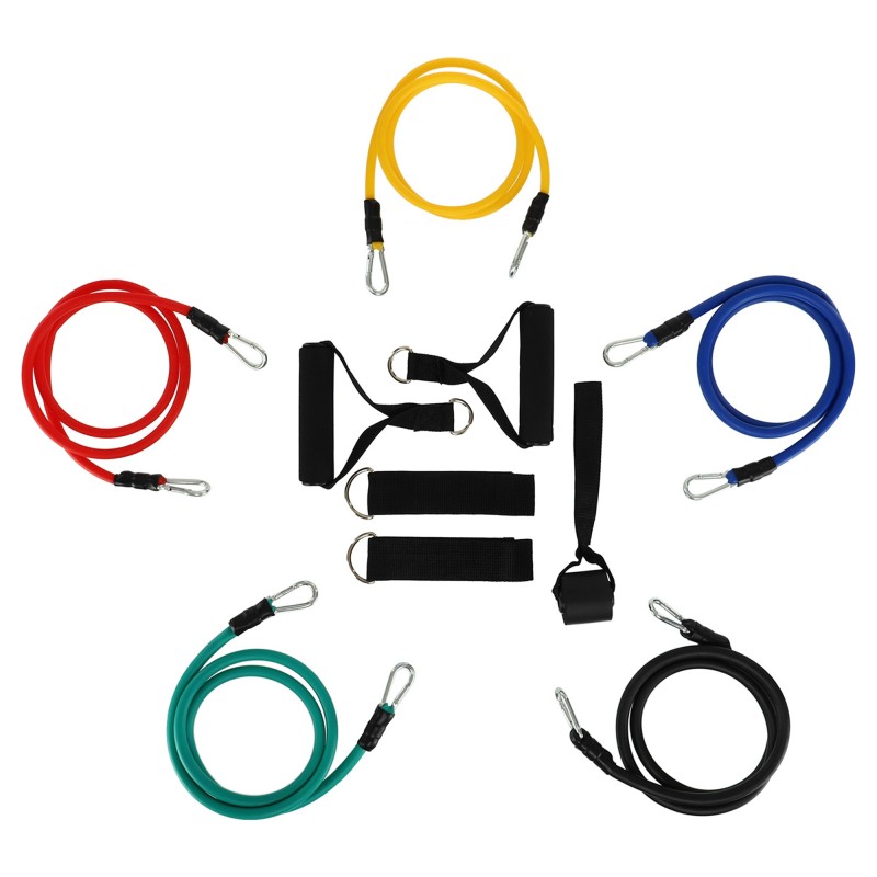 Еспандер багатофункціональний для фітнесу 5 джгутів FitGo у чохлі, різнокольоровий, код: FI-9841-S52