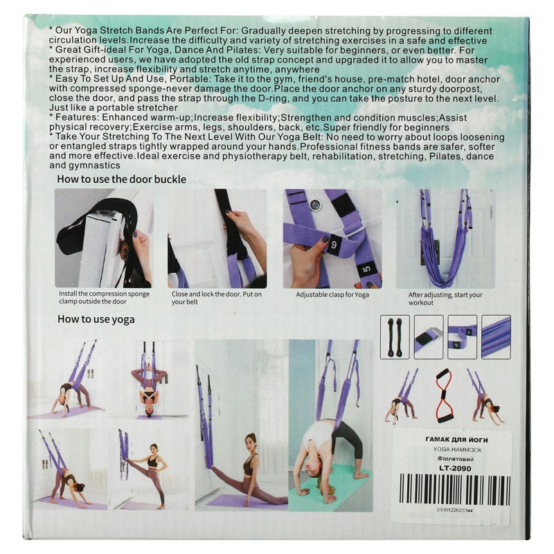 Гамак для йоги підвісний регульований зі стропами та кріпленням на двері FitGo Air Yoga Rope Lutinq 1500х800 мм, фіолетовий, код: LT-2090-S52