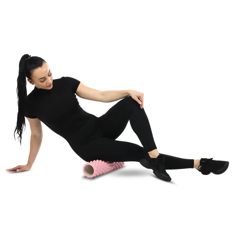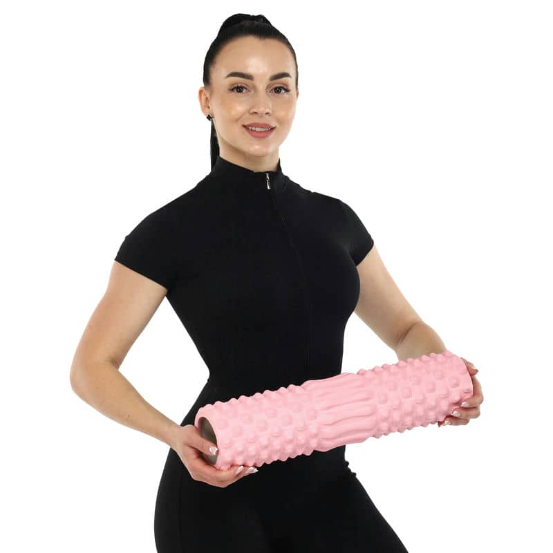 Ролер масажний циліндр (ролик мфр) FitGo Grid Spine Roller, 450x105 мм, рожевий, код: FI-9389_P