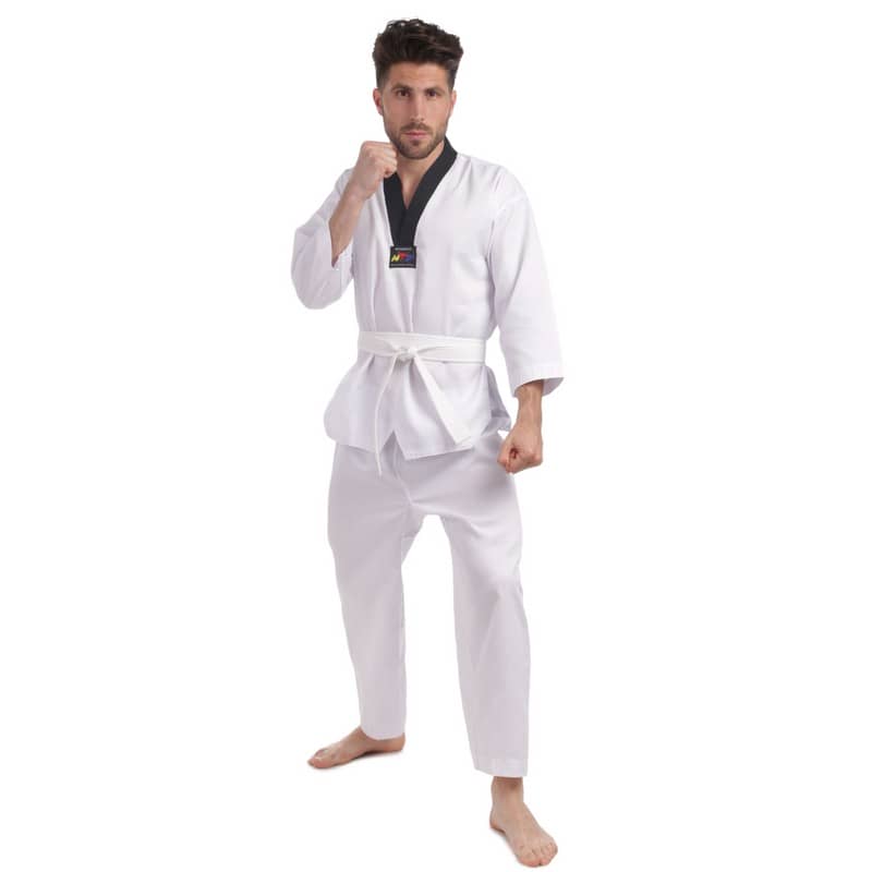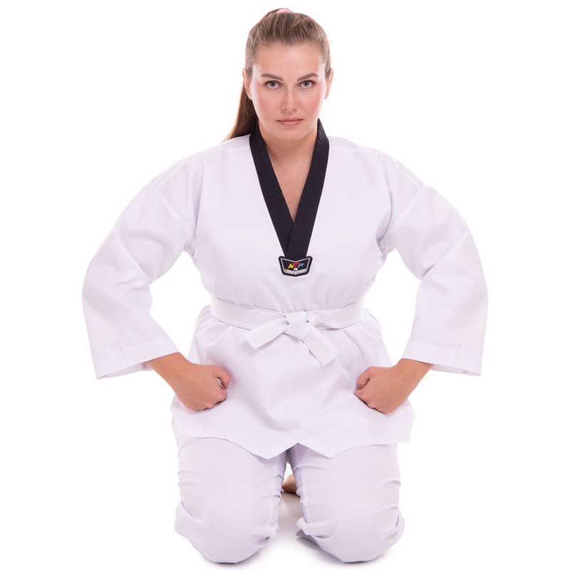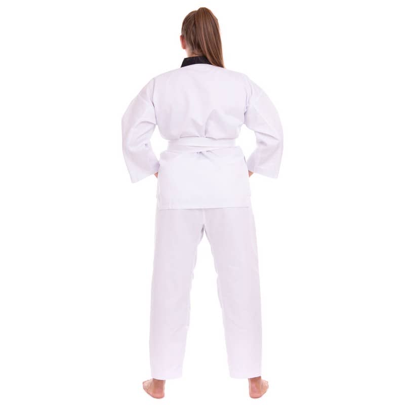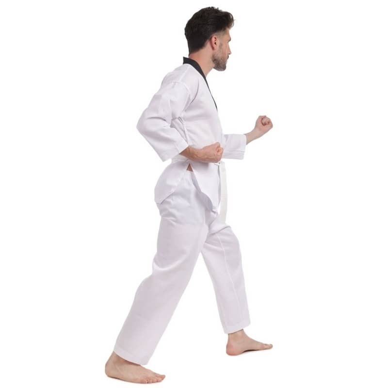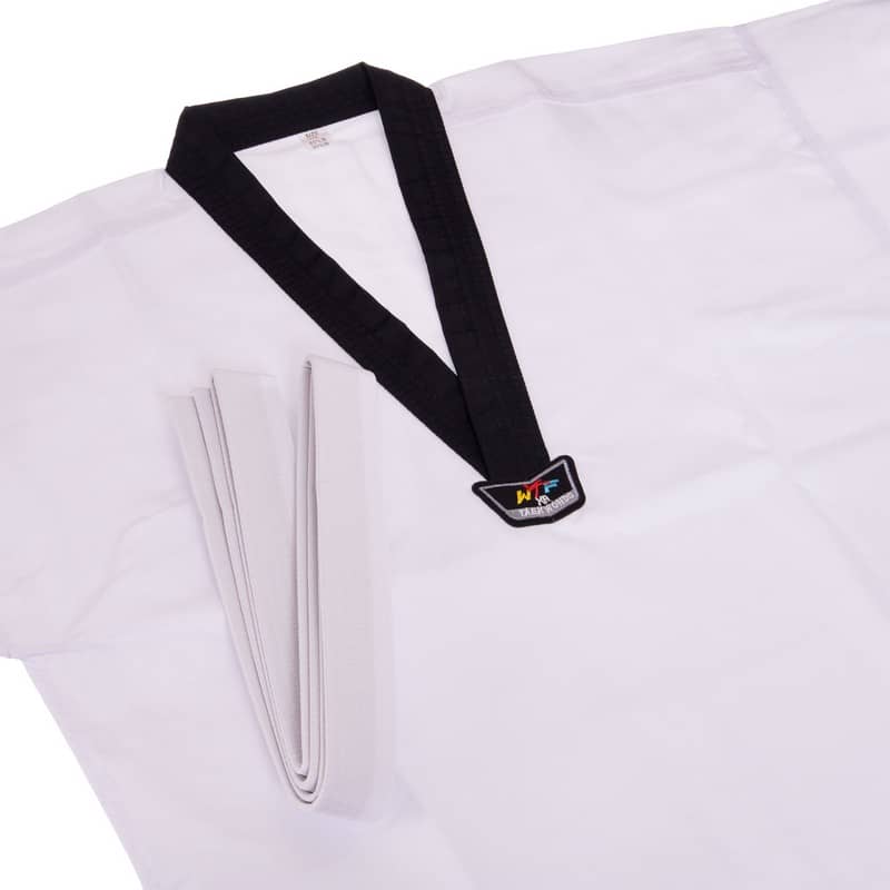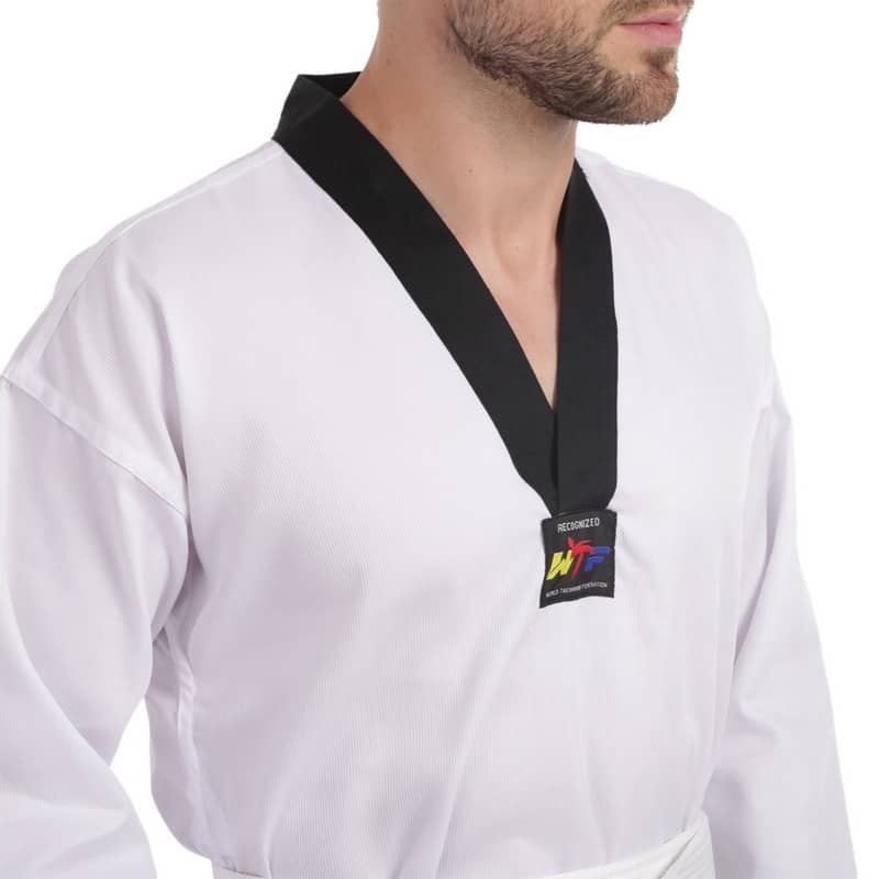 Кімоно для тхеквондо (добок) FitGo WTF, розмір 6 (зріст 160), білий-чорний, код: CO-012_6W