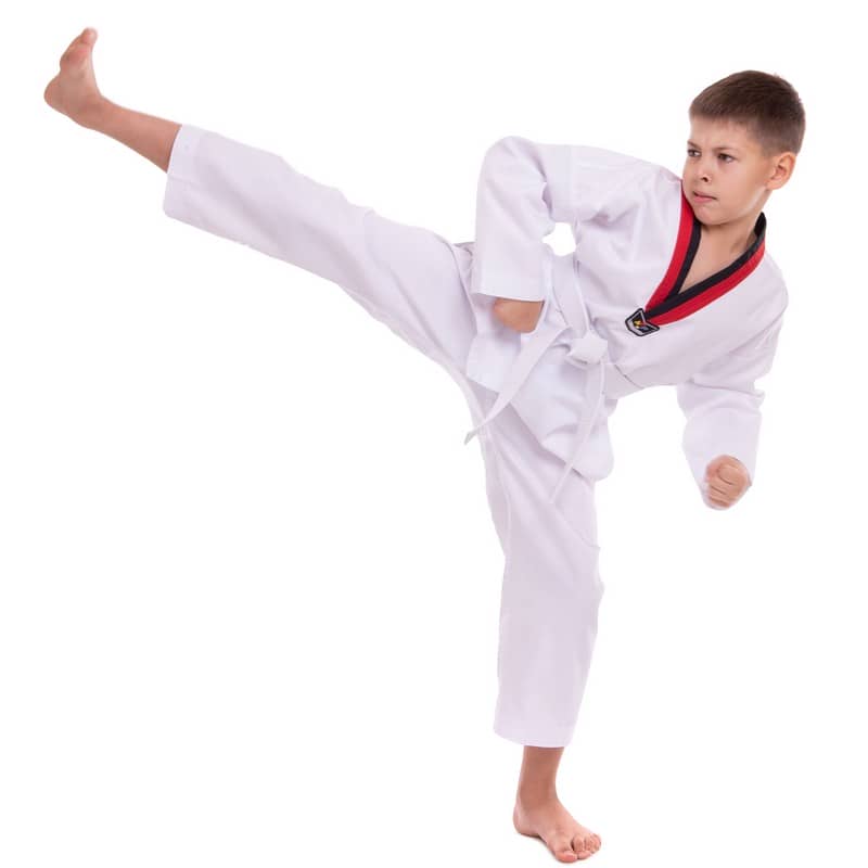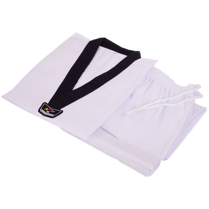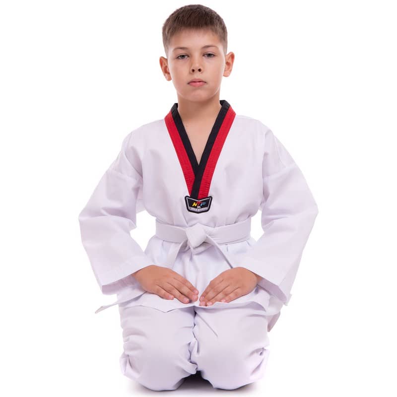 Кімоно для тхеквондо (добок) FitGo WTF, розмір 1 (зріст 110), білий-чорний, код: CO-012_1W
