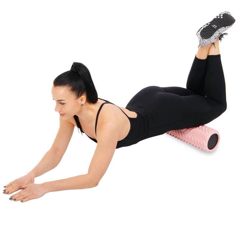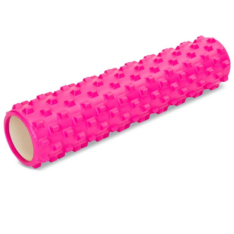Ролер масажний циліндр (ролик мфр) заповнений піною FitGo Grid Bubble Roller, 450x110 мм, рожевий, код: FI-9392_P