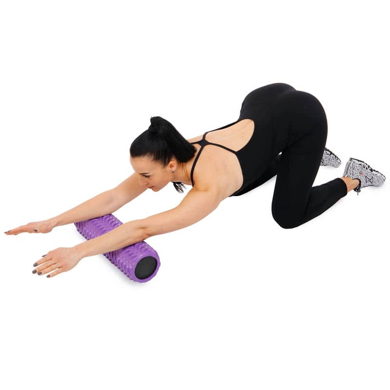 Ролер масажний циліндр (ролик мфр) заповнений піною FitGo Grid Bubble Roller, 450x110 мм, фіолетовий, код: FI-9392_V