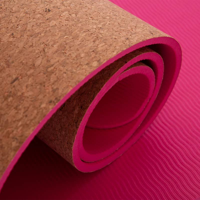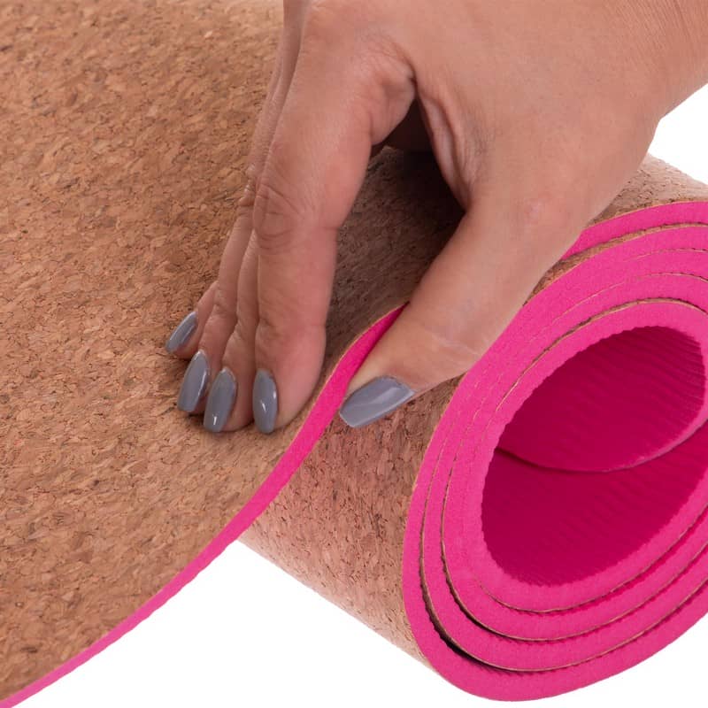 Килимок для йоги FitGo корковий каучуковий 1830x610x6 мм рожевий, код: FI-2433_P-S52