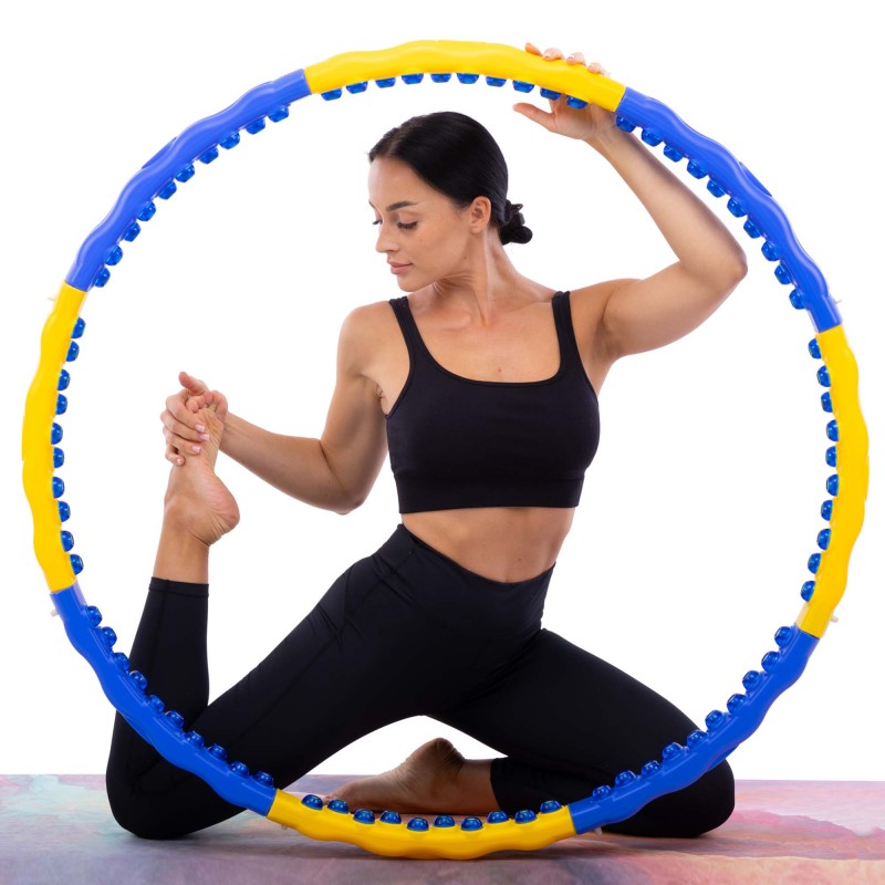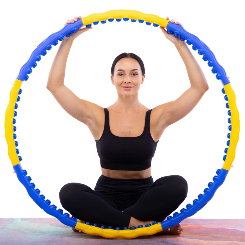 Обруч для схуднення масажний розбірний Хула Хуп FitGo Dynamic Hoop 8 секцій, жовтий-синій, код: JS-6018-S52
