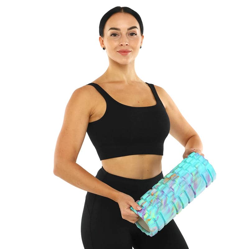 Ролер масажний циліндр (ролик мфр) FitGo Grid Bubble Roller, 300x100 мм, блакитний, код: FI-3531_N