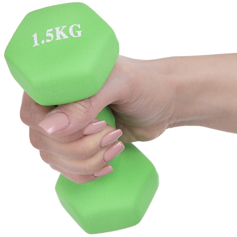 Гантелі для фітнесу FitGo з неопреновим покриттям 1x1.5 кг салатовий, код: TA-0001-1_5_LG-S52