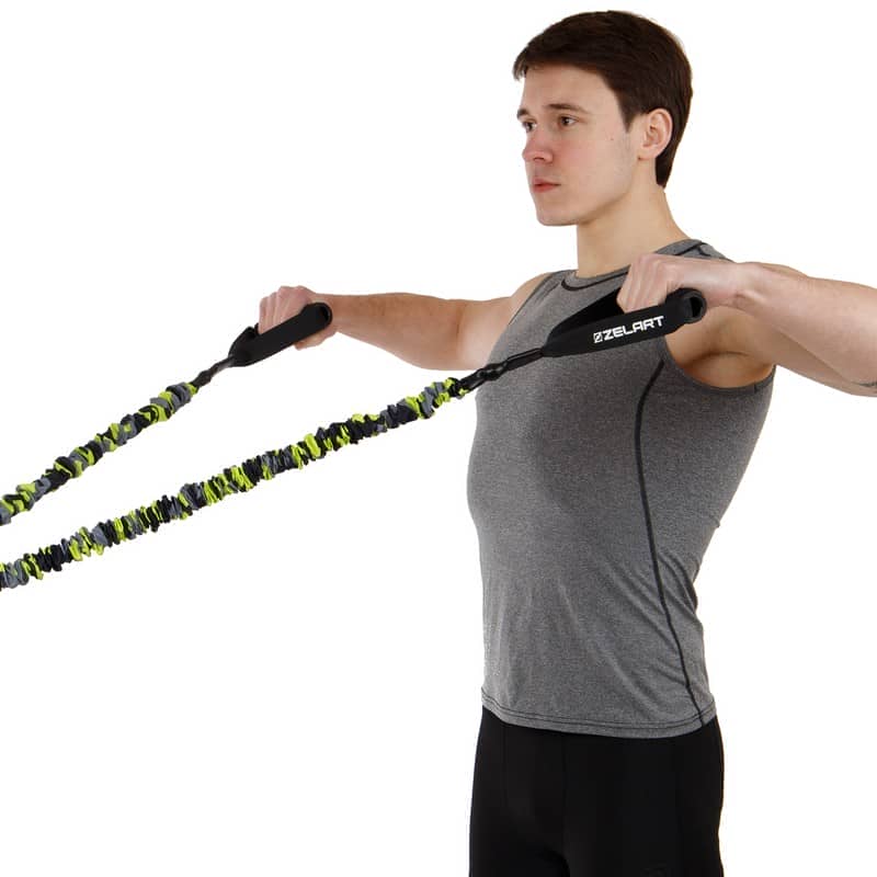 Еспандер трубчастий з ручками в захисному рукаві Zelart 45LB, навантаження-20,5 кг, жовтий, код: FI-7834-45-S52