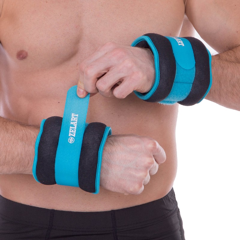Обважнювачі-манжети для рук Zelart 2x1кг, чорний-блакитний, код: FI-4245-2-S52
