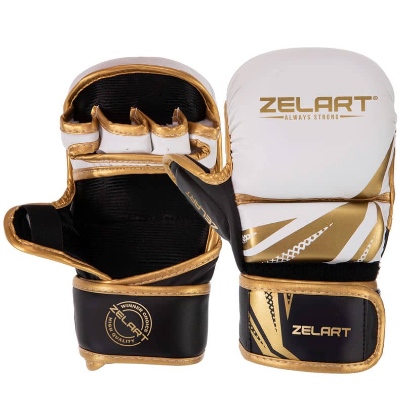 Рукавички для змішаних єдиноборств Zelart розмір XL, білий-чорний-золотий, код: BO-3393_XLWBKY