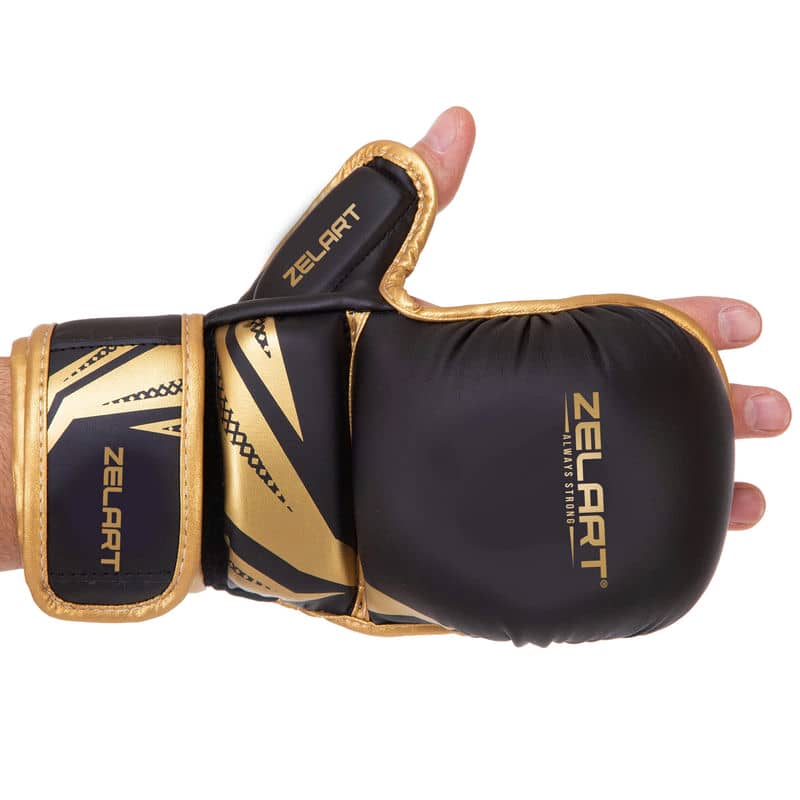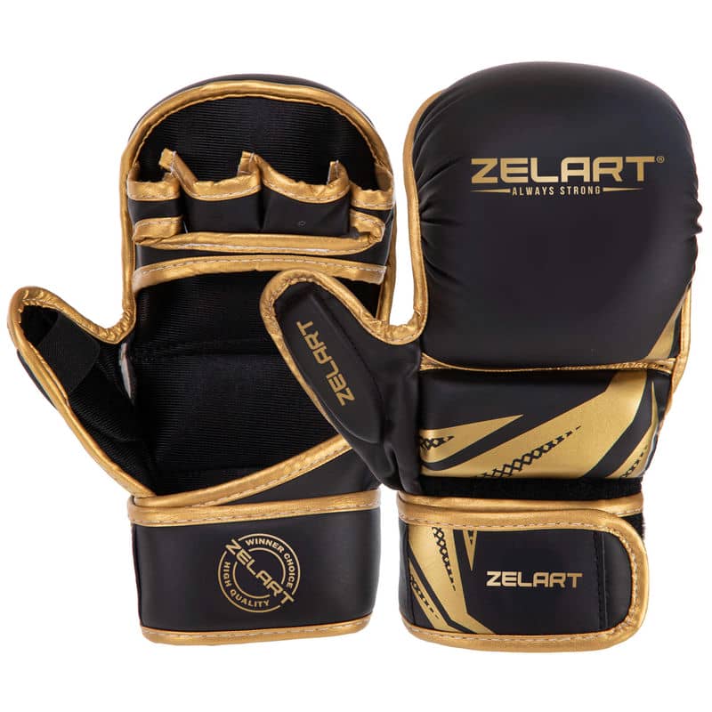 Рукавички для змішаних єдиноборств Zelart розмір XL, чорний-золотий, код: BO-3393_XLBKG
