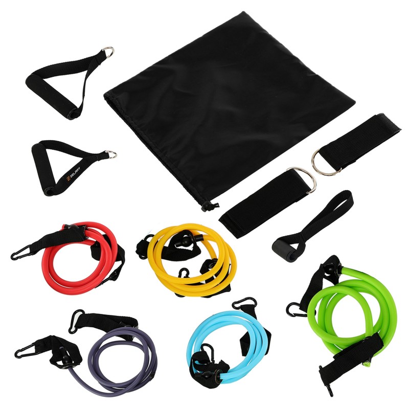 Еспандер багатофункціональний для фітнесу 5 жгутів Zelart Resistance Band в чохлі різнокольоровий, код: FI-5449
