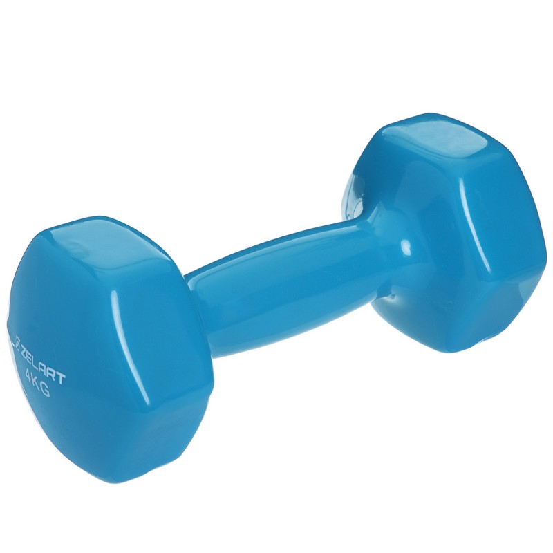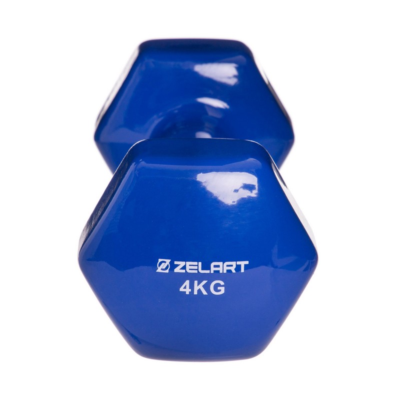 Гантель для фітнесу Zelart з вініловим покриттям 1х4кг синій, код: TA-2777-4_BL-S52