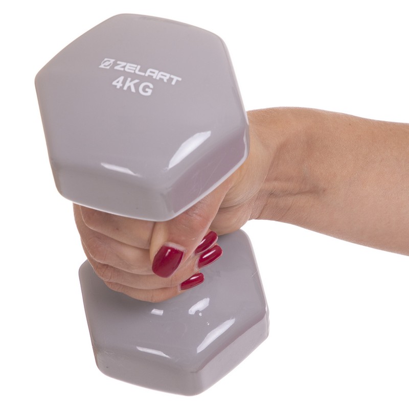 Гантель для фітнесу Zelart з вініловим покриттям 1х4кг сірий, код: TA-2777-4_GR-S52
