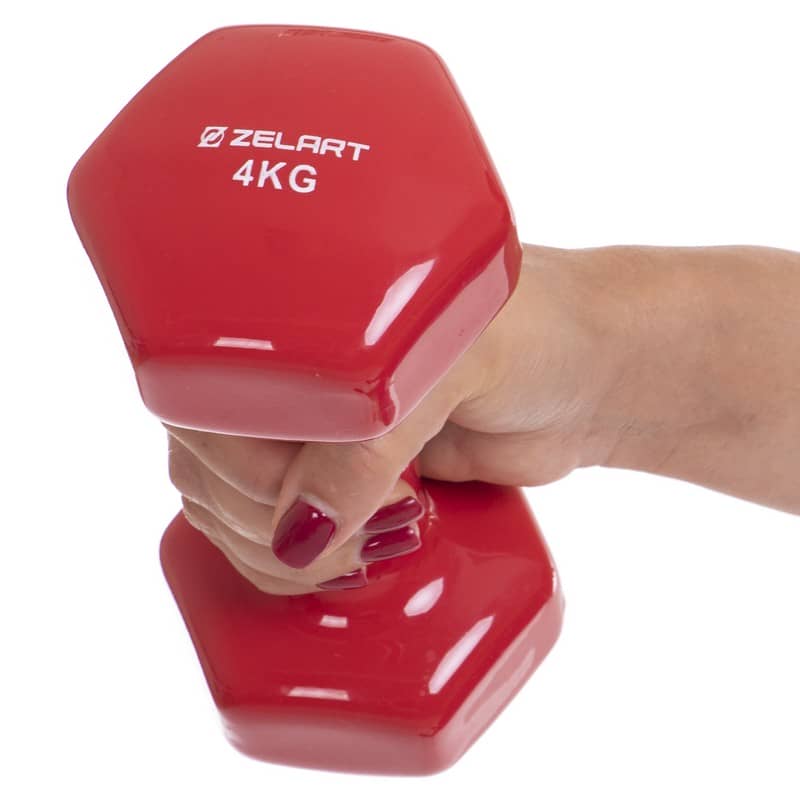 Гантель для фітнесу Zelart з вініловим покриттям 1х4кг червоний, код: TA-2777-4_R-S52