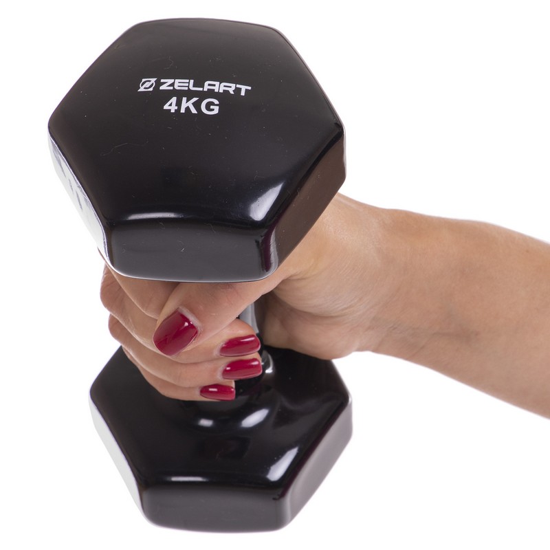 Гантель для фітнесу Zelart з вініловим покриттям 1х4кг чорний, код: TA-2777-4_BK-S52