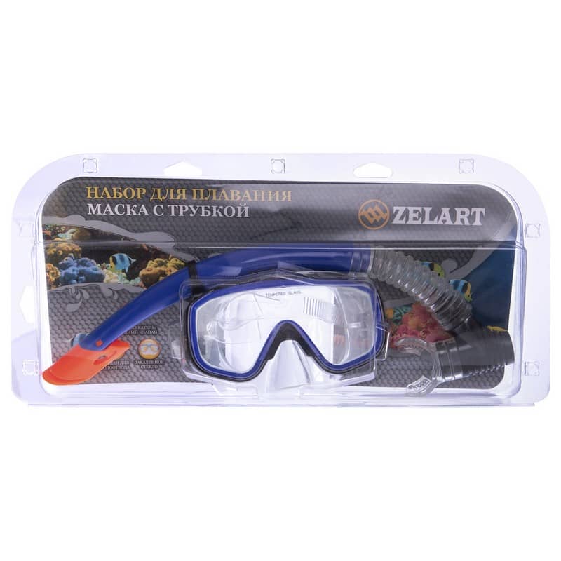 Набір для плавання маска з трубкою Zelart чорний-синій-прозорий, код: M138-SN50-4-PVC_BKBL