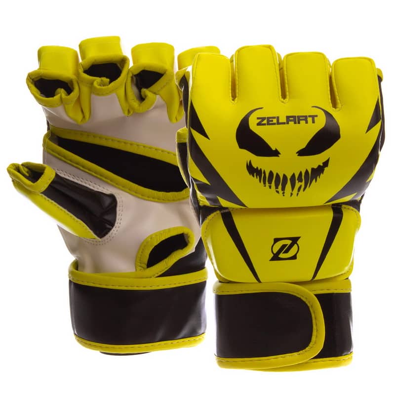 Рукавички для змішаних єдиноборств MMA Zelart розмір S, лимонний-чорний, код: BO-1374_SYBK