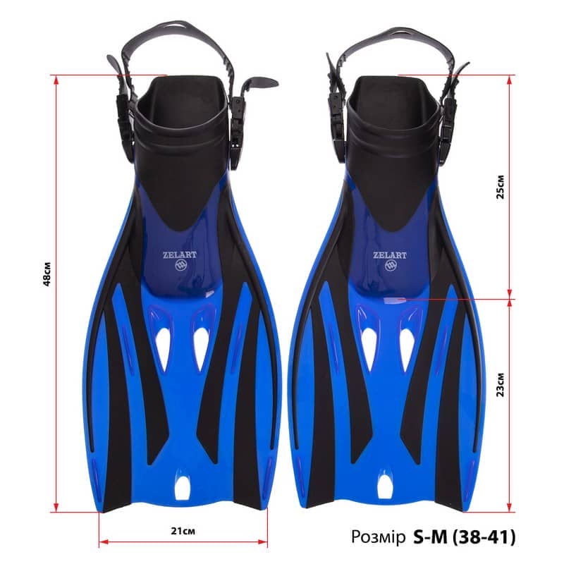 Ласти з відкритою п"ятою Zelart S-M (38-41), чорний-синій, код: F52_SM
