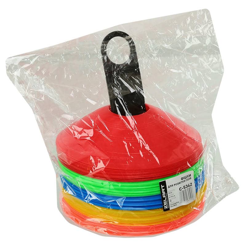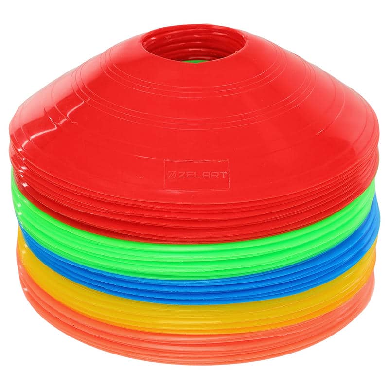 Фішки конуси тренувальні набір Zelart 50шт, висота 5см, ø19,5см, різнокольорові, код: C-5342