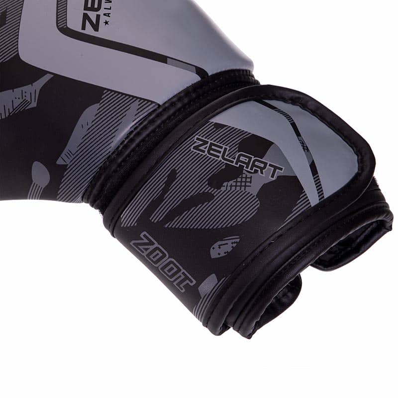 Боксерські рукавички Zelart 10 унцій, камуфляж сірий, код: BO-3397_10GR