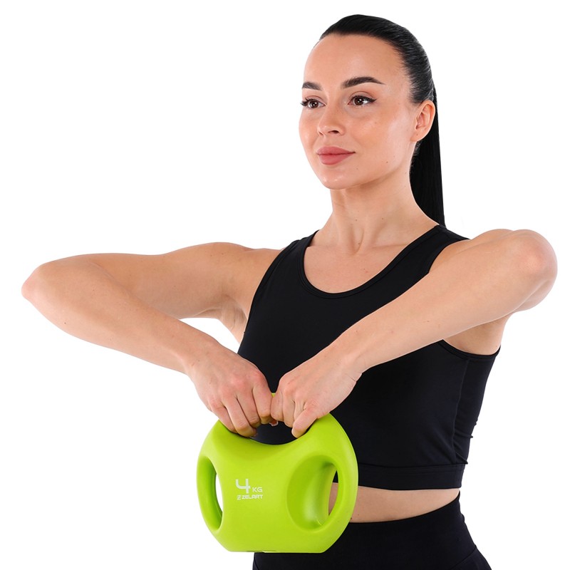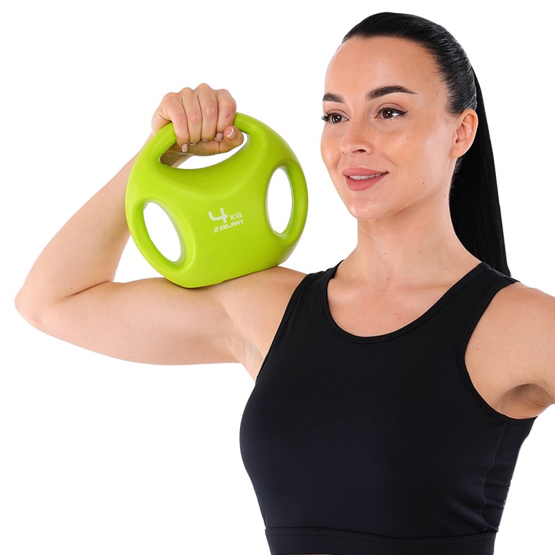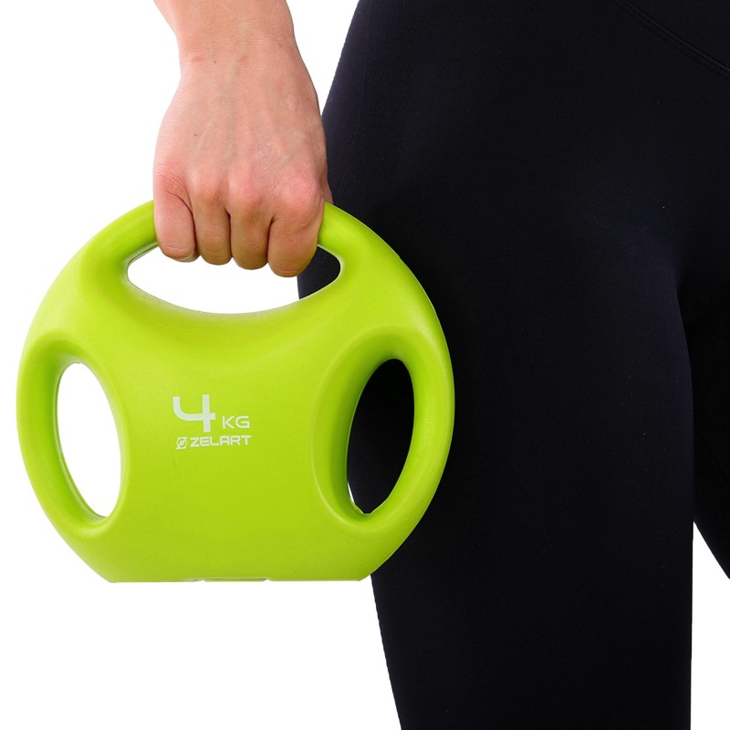Гиря цільна пластикова PE з потрійним хватом Zelart 4кг, салатовий, код: TA-2670-4-S52