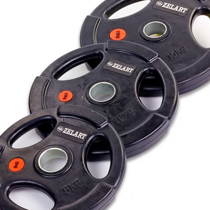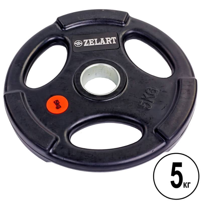 Диски обгумовані Zelart Z-Hit з потрійним хватом і металевою втулкою 5 кг (d-51мм), код: TA-5160-5-S52