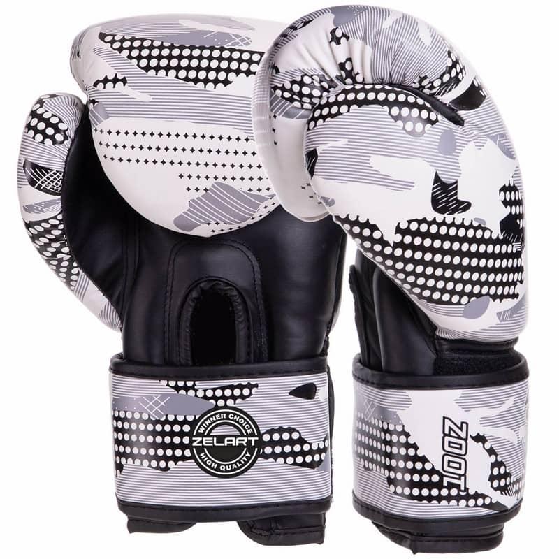 Боксерські рукавички Zelart 12 унції, камуфляж білий, код: BO-3397_12W