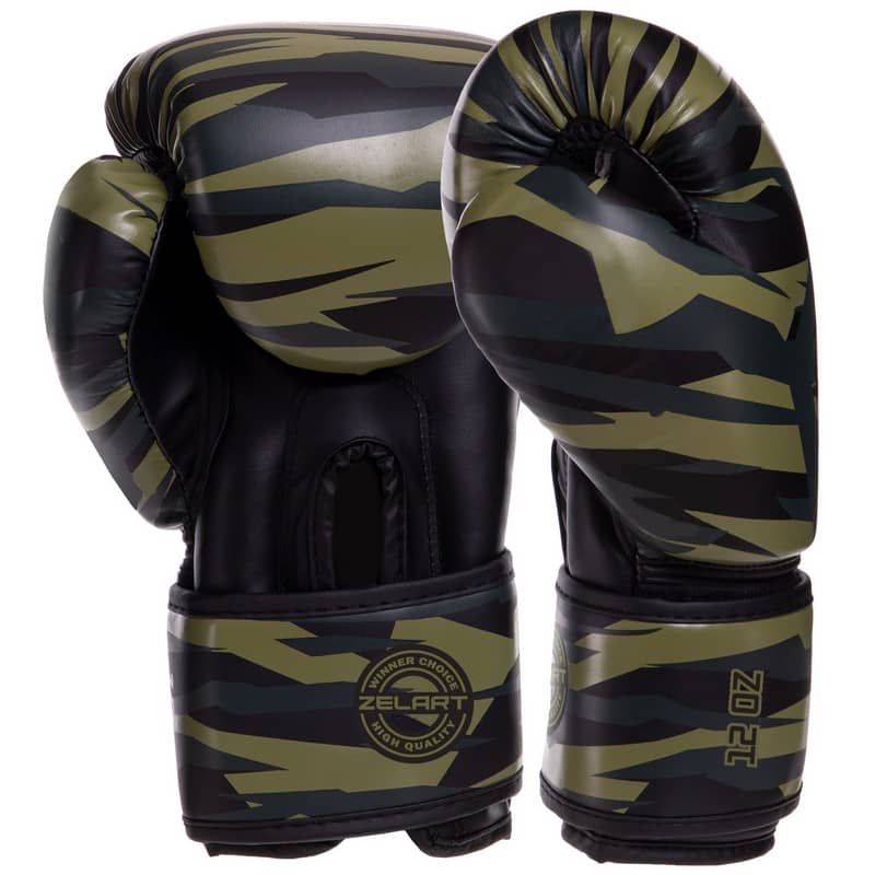 Боксерські рукавички Zelart 12 унцій, камуфляж хакі, код: BO-3397_12H