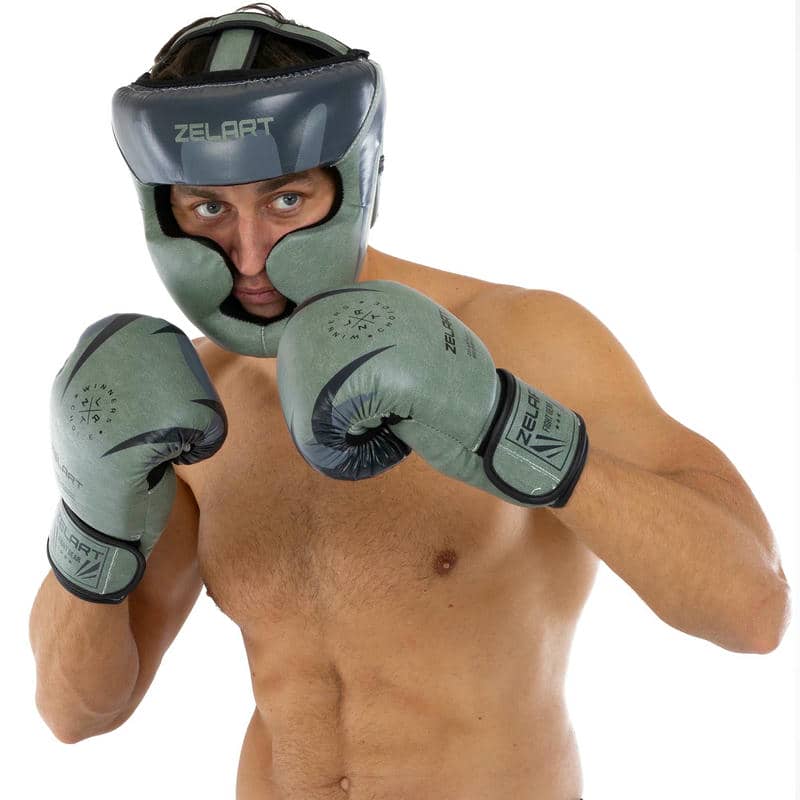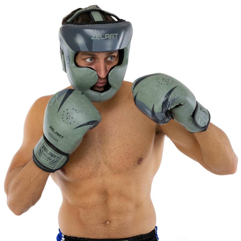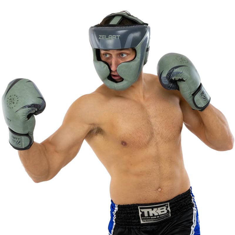 Шолом боксерський з повним захистом Zelart M, чорний-оливковий, код: BO-1197_MOL