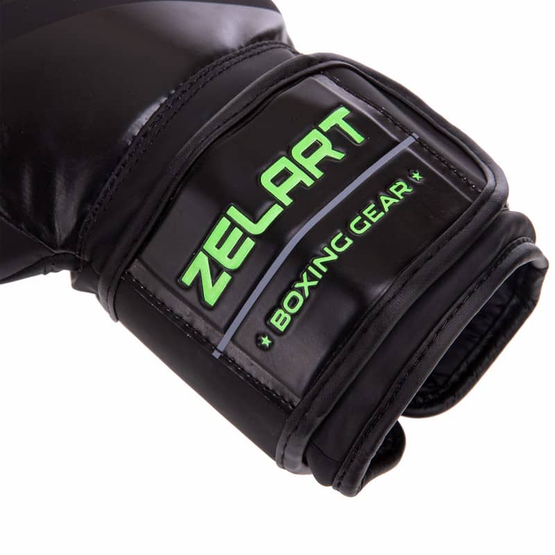 Рукавички боксерські Zelart 10 унцій, чорний-салатовий, код: VL-3085_10LG-S52
