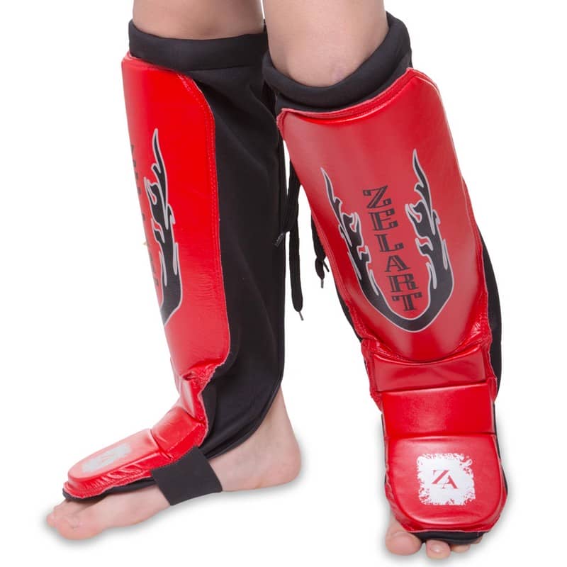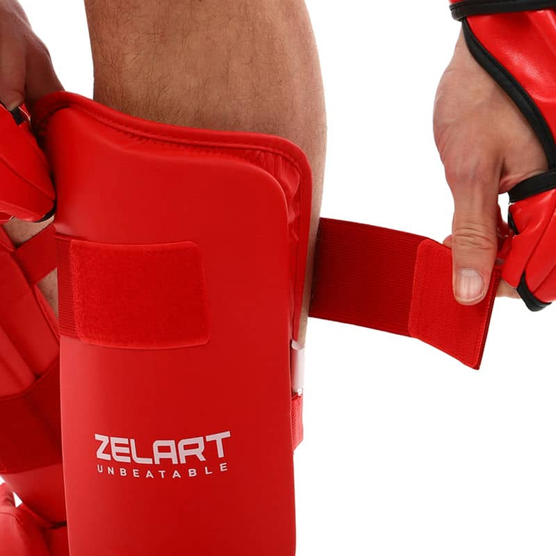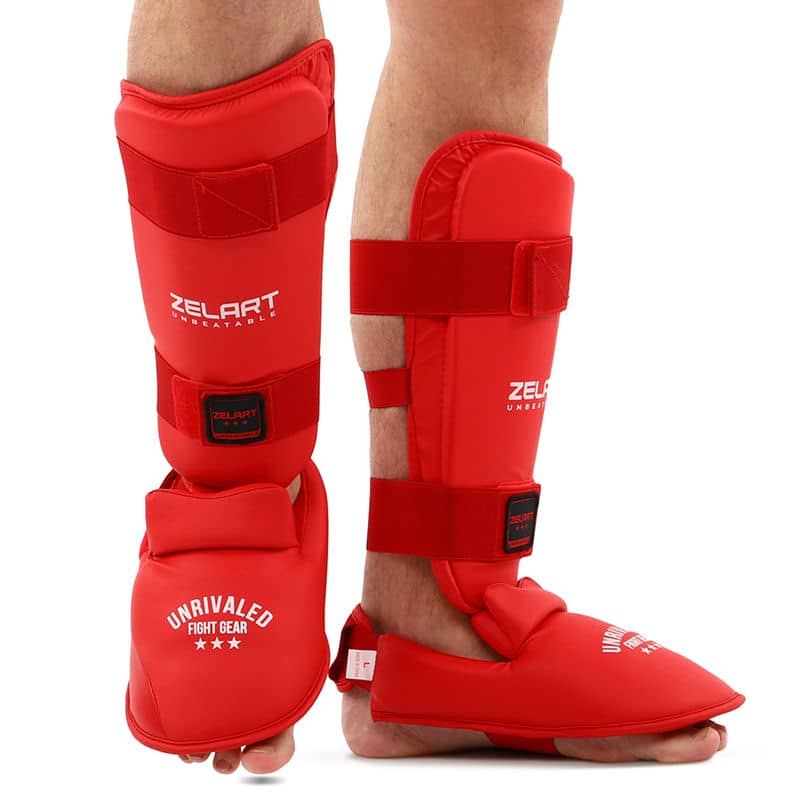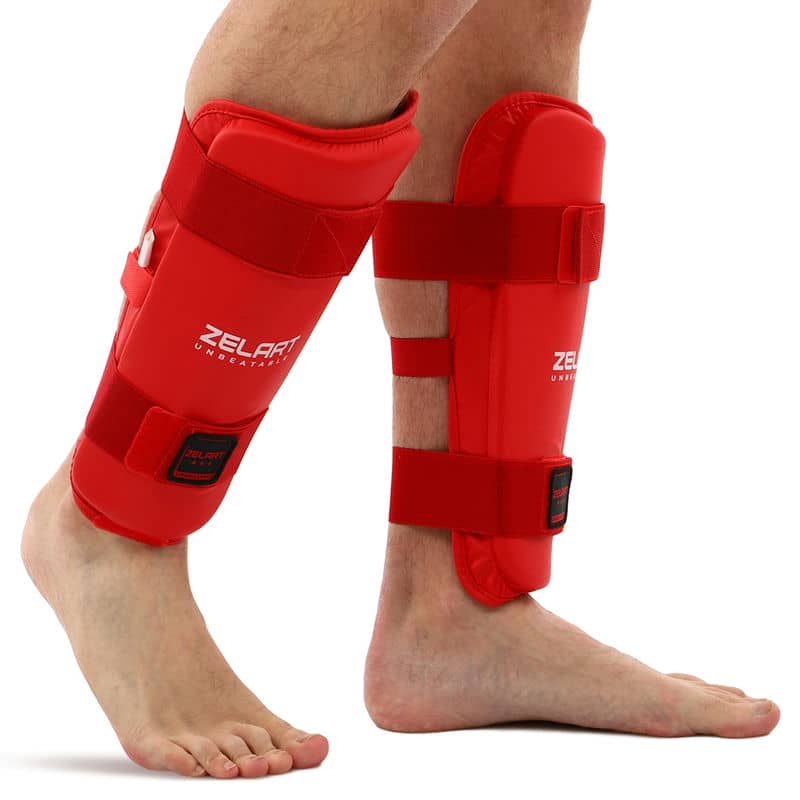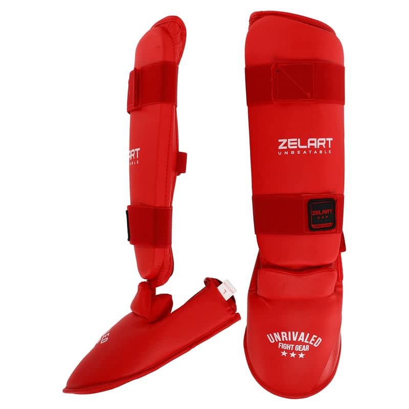 Захист гомілки та стопи для карате Zelart M, червоний, код: BO-7249_MR