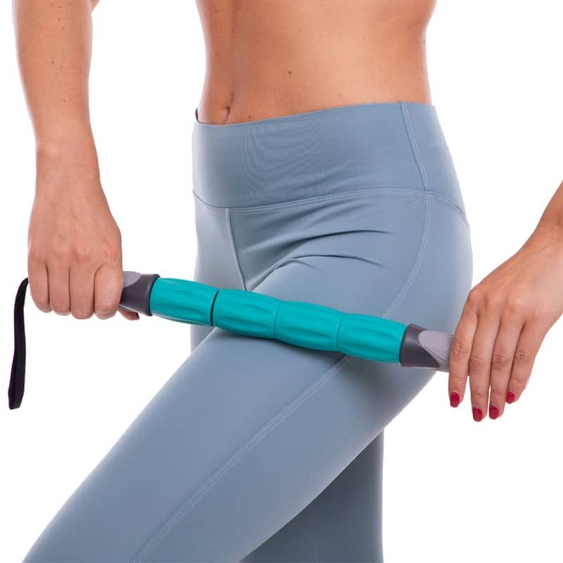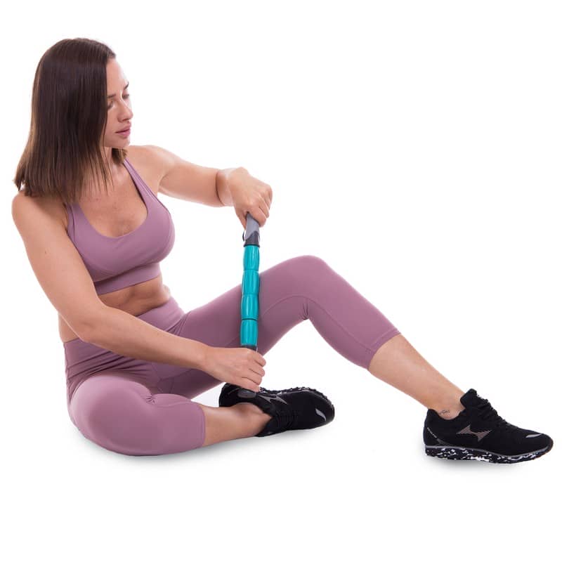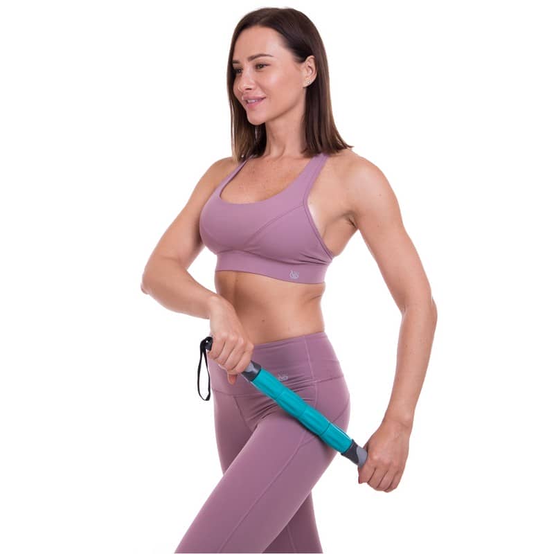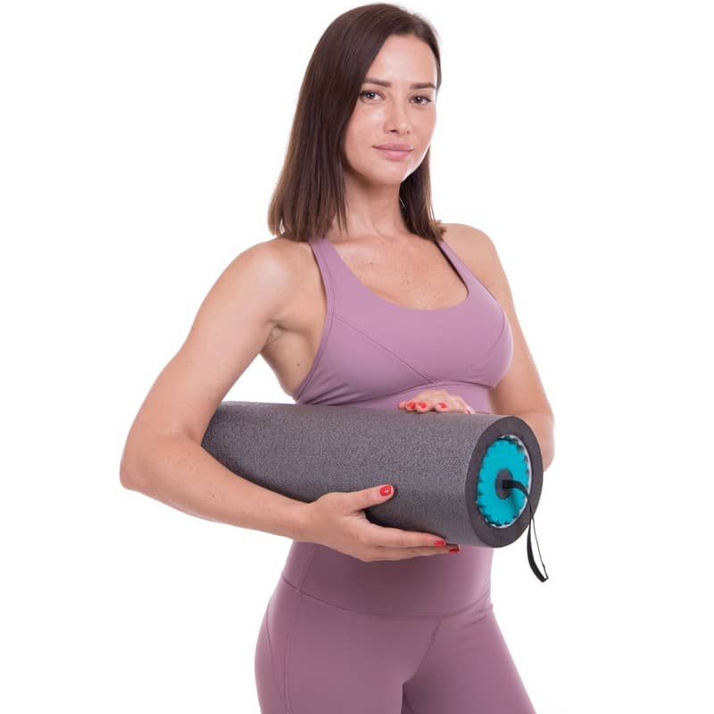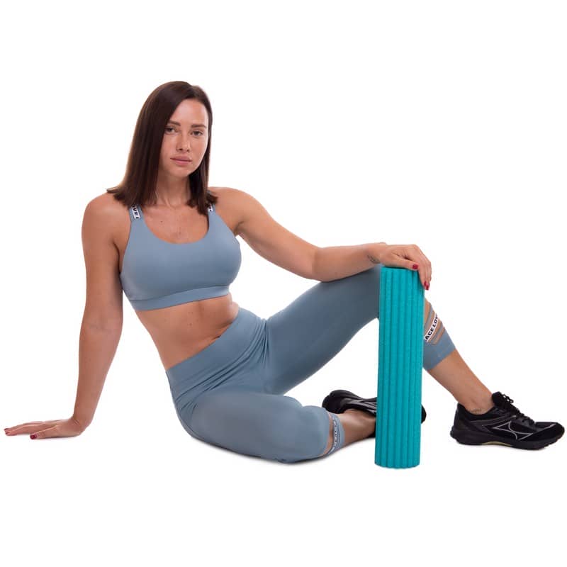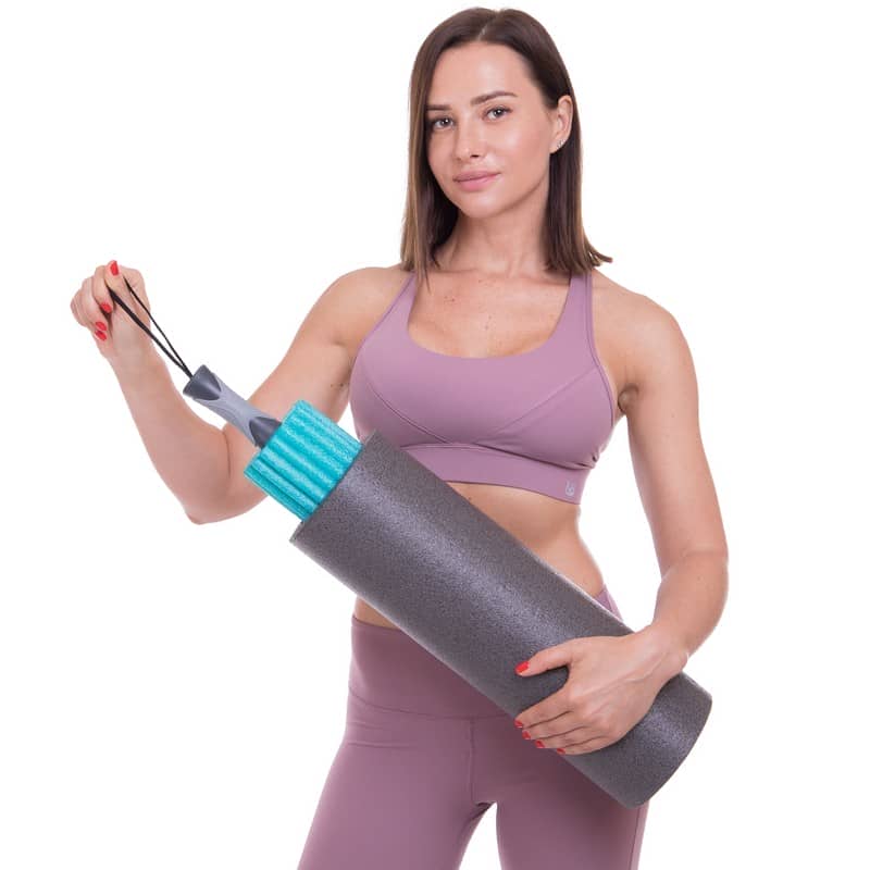 Йога ролер набір 3 в 1 (масажер + два ролери для йоги) Zelart 45см, чорний-бірюзовий, код: FI-0271_BI