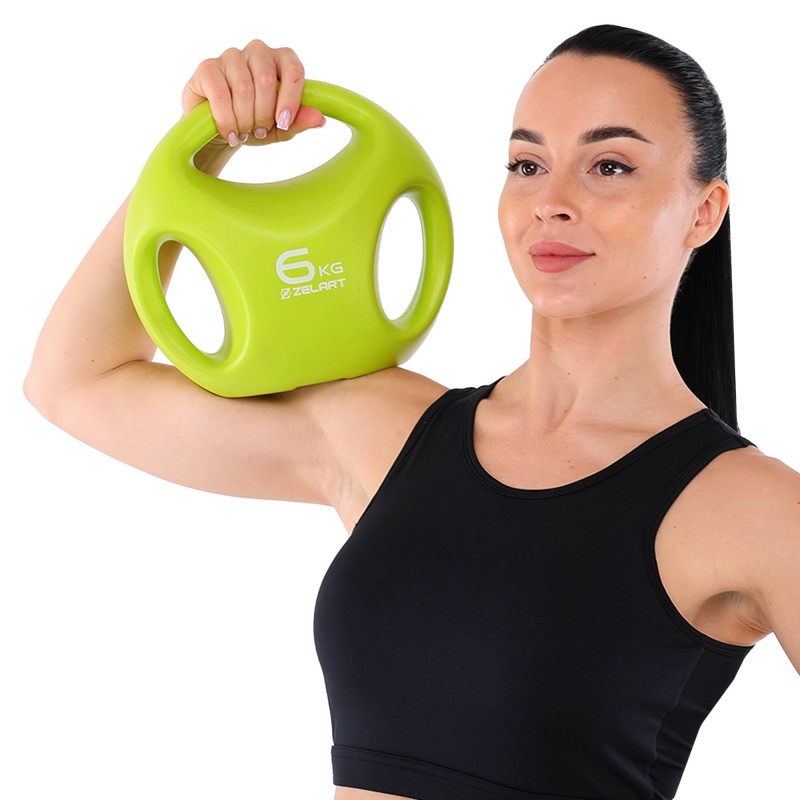 Гиря цільна пластикова PE з потрійним хватом Zelart 6кг, салатовий, код: TA-2670-6-S52