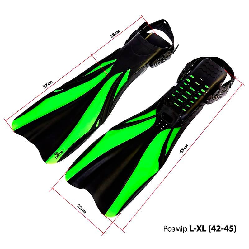 Ласти з відкритою п"ятою Zelart L-XL (42-45), салатовий-чорний, код: F31_LXLLG