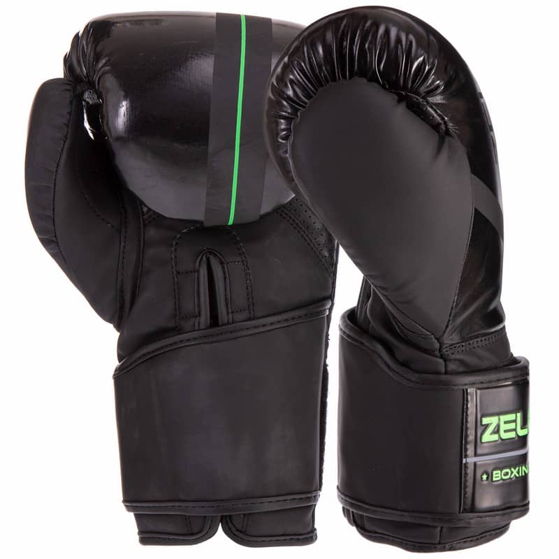 Рукавички боксерські Zelart 12 унцій, чорний-салатовий, код: VL-3085_12LG-S52